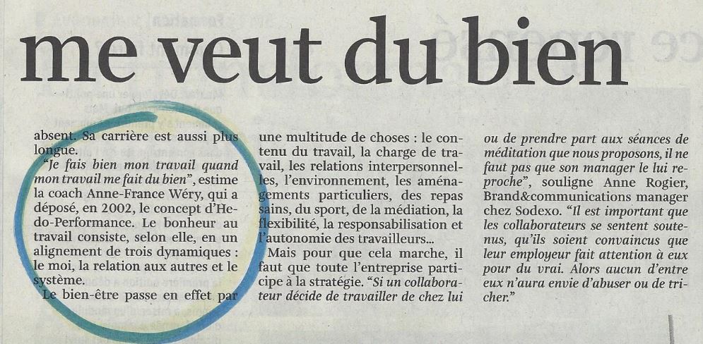 La Libre Entreprise de ce 11 juin met le focus sur « Bien être pour bien faire » : pour être une entreprise vivante, construisez vos sources de bien être grâce à l’Hedo-Performance®, ma philosophie d’accompagnement vers de la cohérence, du sens et du développement de soi !